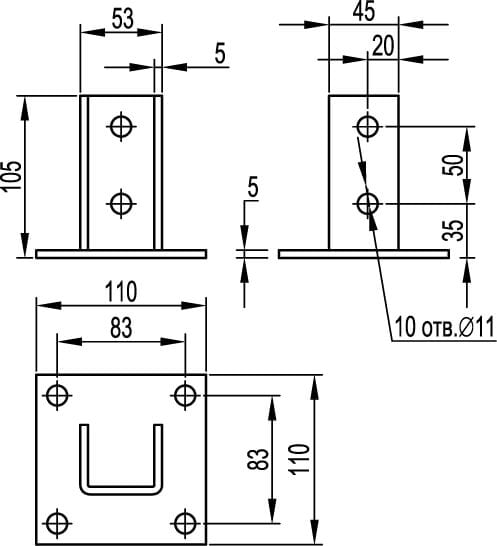 Модель/исполнение | Монтажное основание | Материал | Сталь |