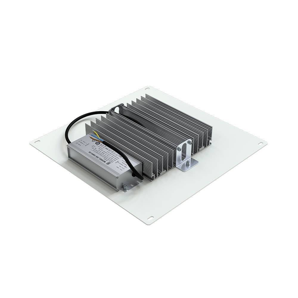 Источник питания расположен снаружи рядом с корпусом, на стальной пластине. Он имеет металлический корпус, который залит теплопроводящим электроизоляционным компаундом. Это снижает степень нагрева электронных компонентов источника питания и положительно отражается на стабильности и продолжительности работы светильника. Кроме того, источник питания эффективно защищен от возникающих помех и импульсов высокой энергии в сети (до 12 кВ).