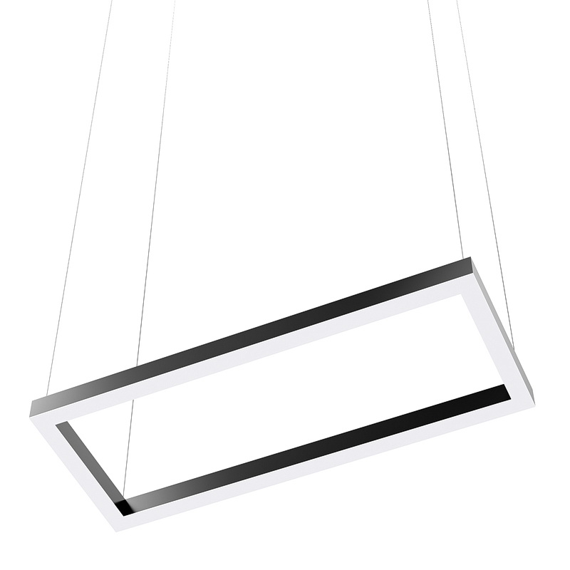 Корпус светильника прямоугольной формы может быть выполнен в черном, белом и сером цветах. Цветовая температура на выбор: теплый цвет (3000К), нейтральный (4000К) или холодный (6500К). Материал корпуса – металл, размеры на выбор. Вариант монтажа – подвесной потолочный.